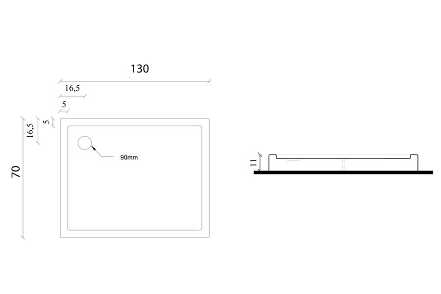 Akrilna tuš kada Nova 70x130 ima visinu 11 cm što omogućuje ugradnju sifona između pločica i kade.