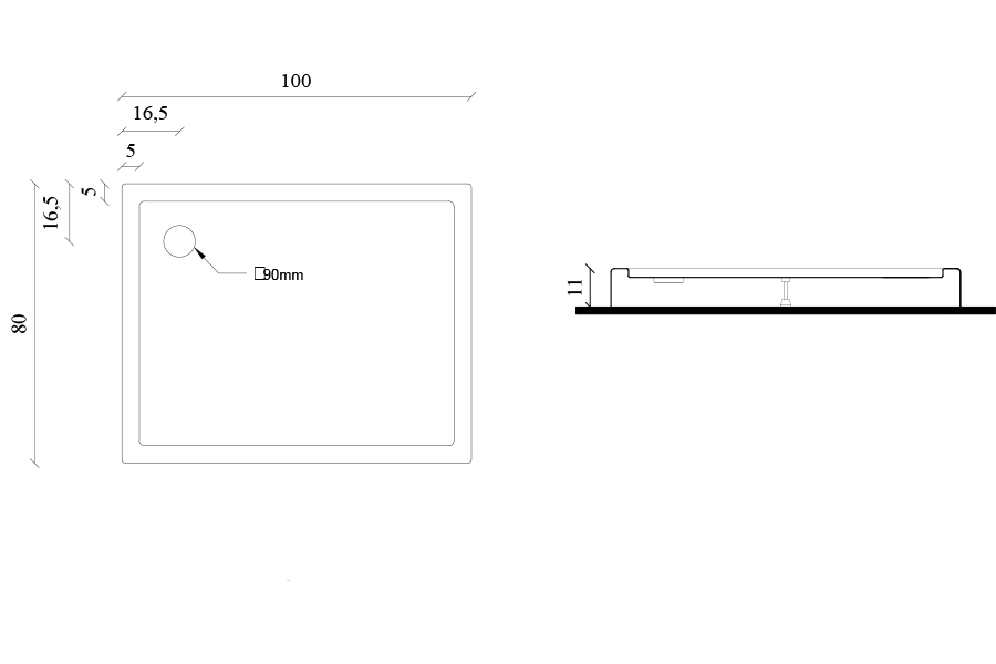 Akrilna tuš kada Nova 80x100 ima visinu 11 cm što omogućuje ugradnju sifona između pločica i kade