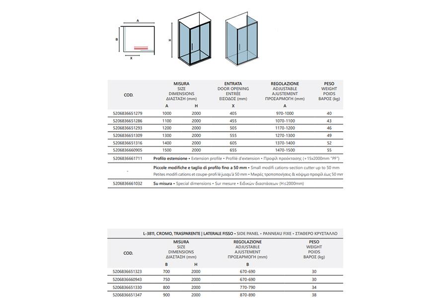 Tuš kabina Lea 400 krom dimenzije 700x1200x2000 mm.