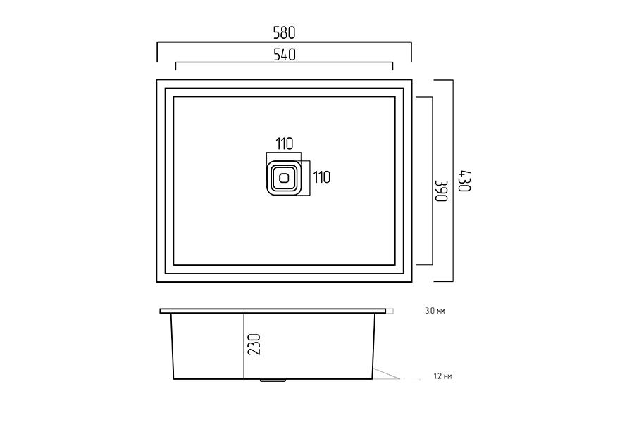 Kuhinjski sudoper Handmade HSB 58x43 Black Ugradbeni