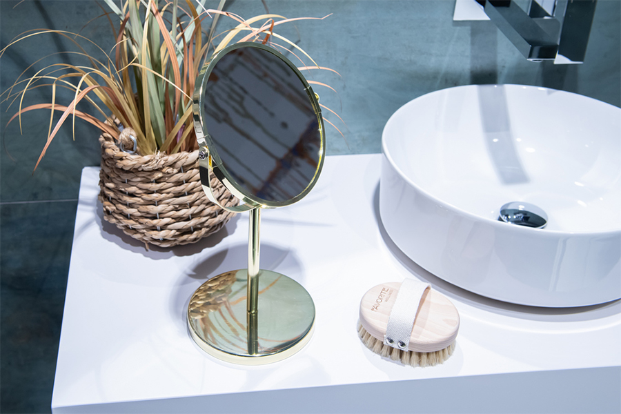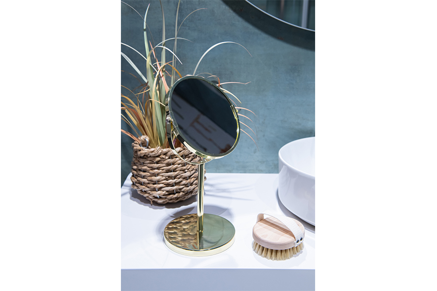 Kozmetičko ogledalo sa stalkom u elegantnoj zlatnoj boji ističe se čvrstom i stabilnom bazom promjera 15 cm, koja osigurava sigurno i pouzdano postavljanje na bilo koju površinu. Ogledalo je dvostrano i rotirajuće, što omogućuje jednostavno podešavanje kuta gledanja. Jedna strana je standardno ogledalo, dok druga nudi 2‑struko povećanje, idealno za precizno nanošenje šminke, njegu kože ili druge kozmetičke postupke koji zahtijevaju veću preciznost. Površina ogledala ima promjer 16 cm, što pruža dovoljno prostora za jasan i detaljan prikaz.