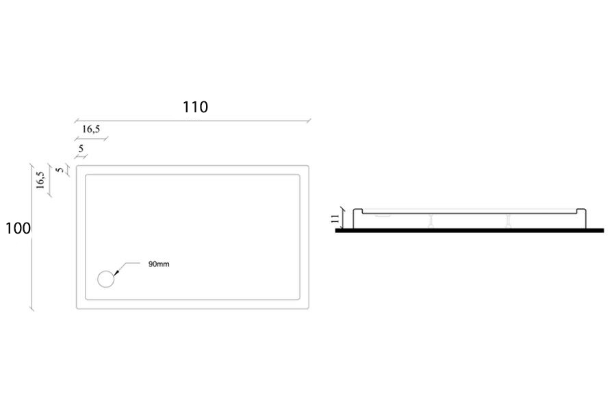 Akrilna tuš kada Nova 100x110 ima visinu 11 cm što omogućuje ugradnju sifona između pločica i kade