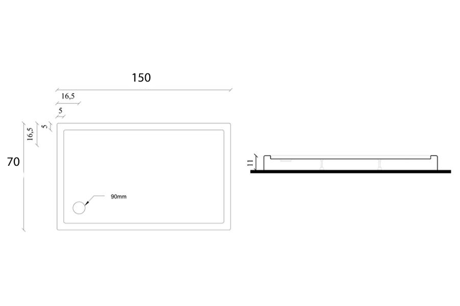 Akrilna tuš kada Nova 70x150 ima visinu 11 cm što omogućuje ugradnju sifona između pločica i kade