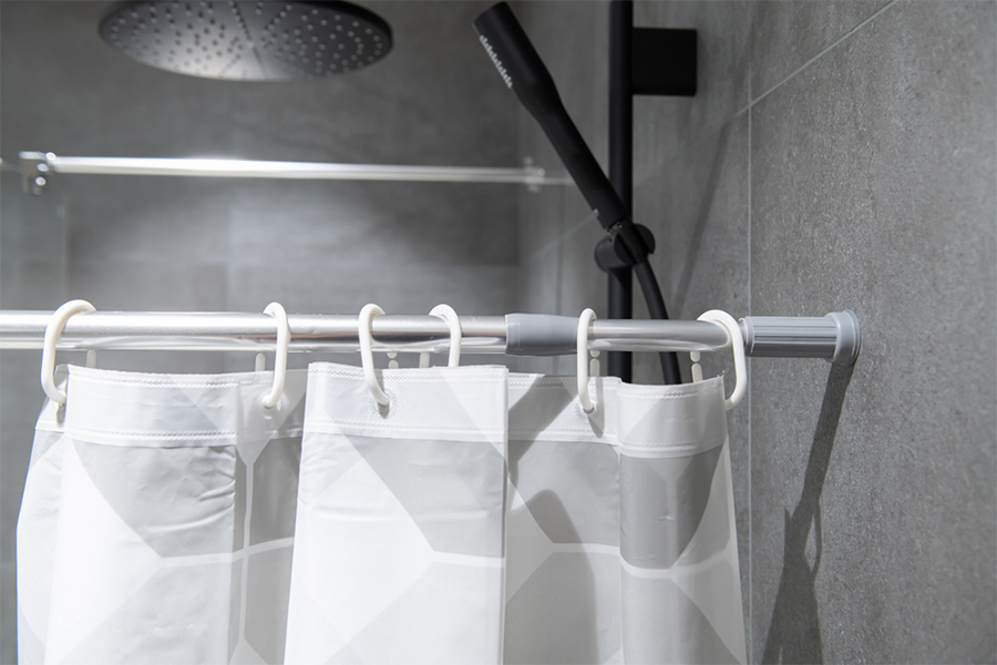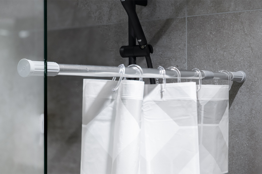 Ovaj nosač za tuš zavjesu izuzetno je jednostavan za ugradnju jer ne zahtijeva bušenje. Jednostavno ga postavite između dva zida i prilagodite duljinu. Gumeni, protuklizni završeci osiguravaju da čvrsto ostane na svom mjestu. Duljina štapa za tuš zavjesu je podesiva i iznosi od 70 do 120 cm.