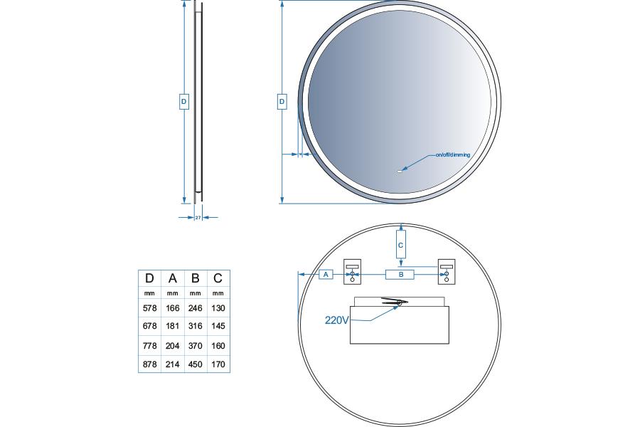 Univerzalno kupaonsko ogledalo Perfetto 90 Hands & Fog Free