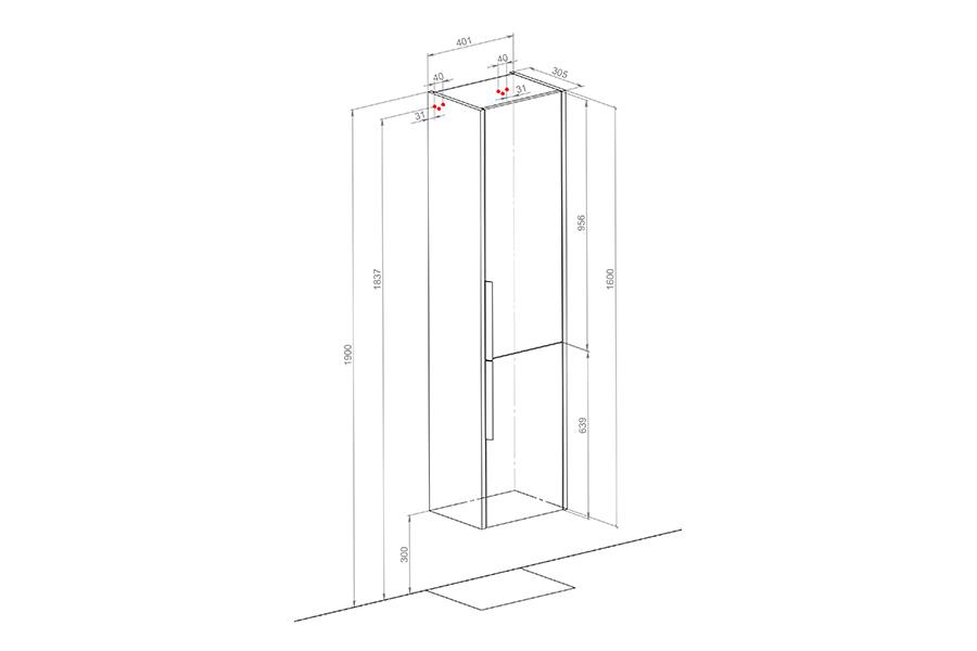 Visina 1600 mm, širina 401 mm, dubina 305 mm.