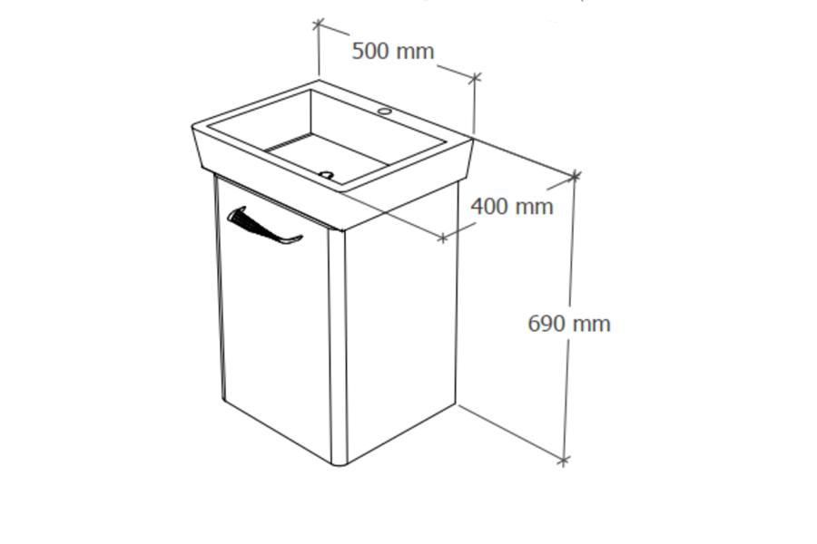 Zidni kupaonski ormarić s umivaonikom Duru 50 - lijevo ili desno otvaranje vrata