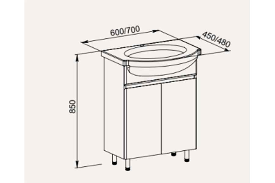 Dimenzije: širina 600 mm, visina 850 mm, dubina 450 mm.