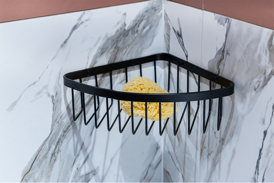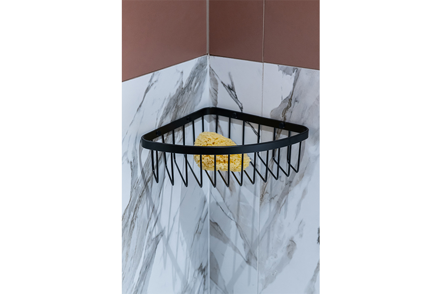 Jednostruka kutna kupaonička polica izrađena je od crno obojenog čelika s mat završnom obradom. Priloženi su vijci za pričvršćivanje s posebnim crnim pokrovima koji stvaraju vrlo estetski učinak.