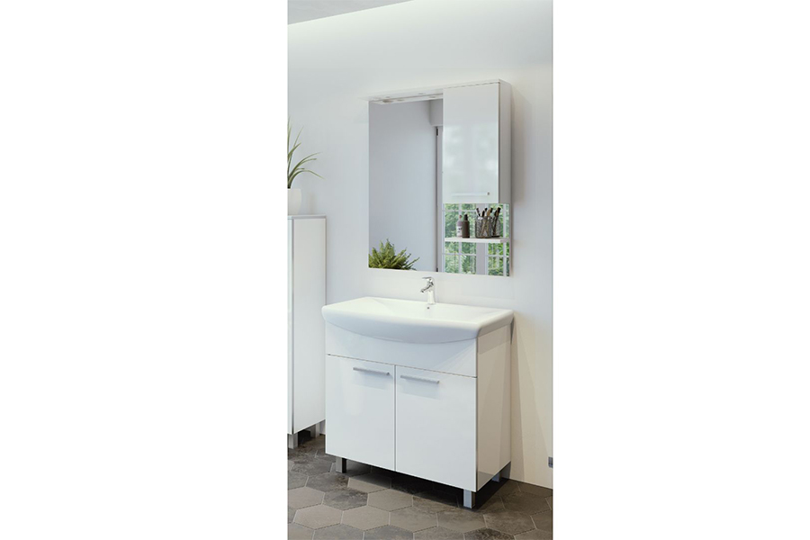 Kupaonski set Neva 85 sastoji se od podne ormariće s umivaonikom te ogledala s ormarićem.