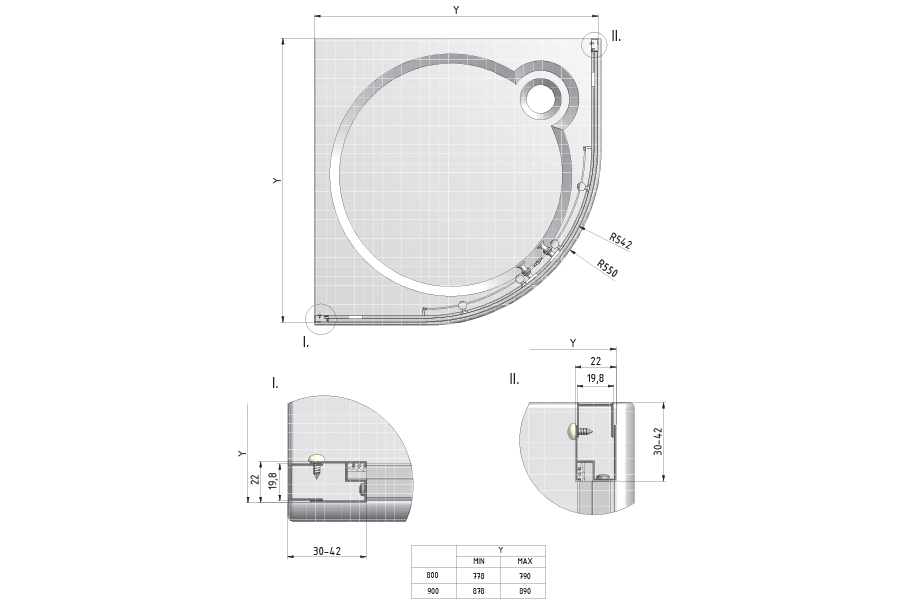 Podesive dimenzije tuš kabine: 780 - 790 mm