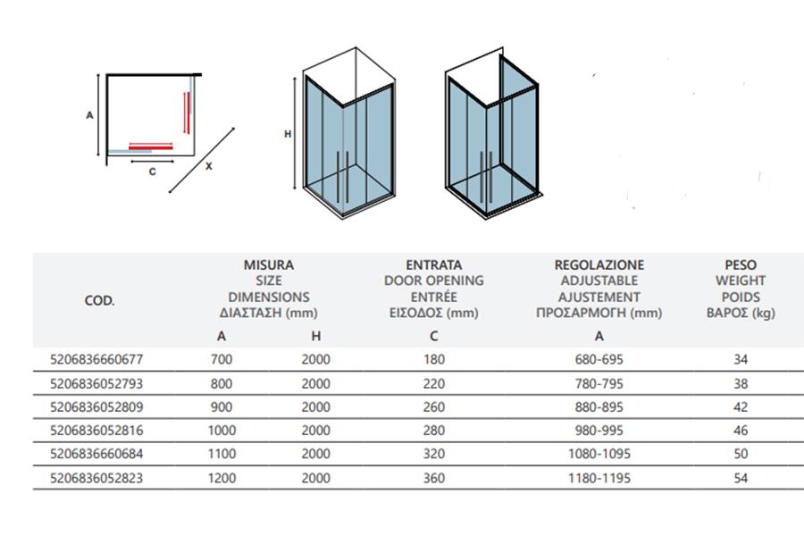 Podesive dimenzije tuš kabine: