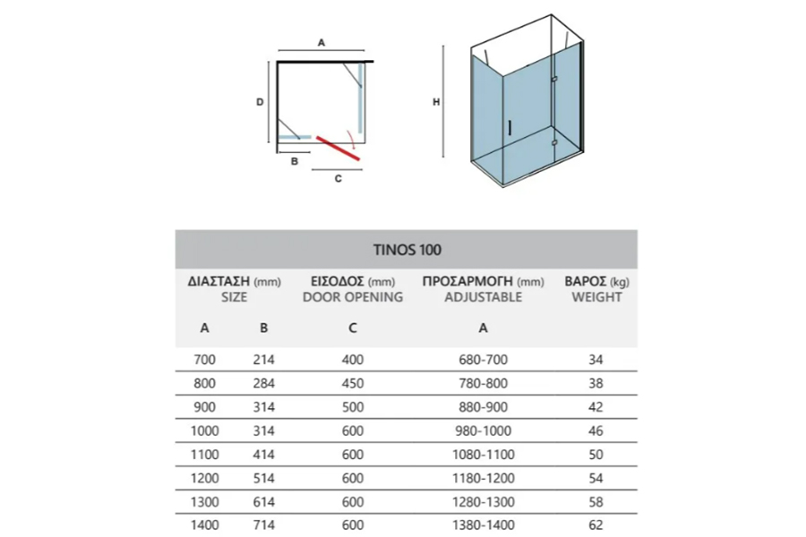 Pravokutna tuš kabina Tinos TN-10 110x70