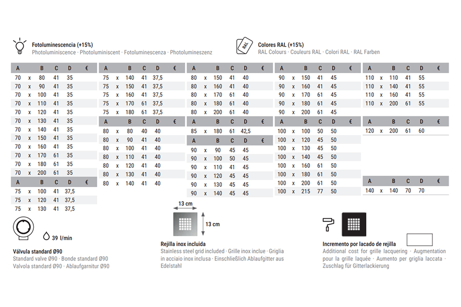 | 251 - 600 | 39 € | 75 € | 80 € | 95 € | 140 € | 150 € | 200 € |