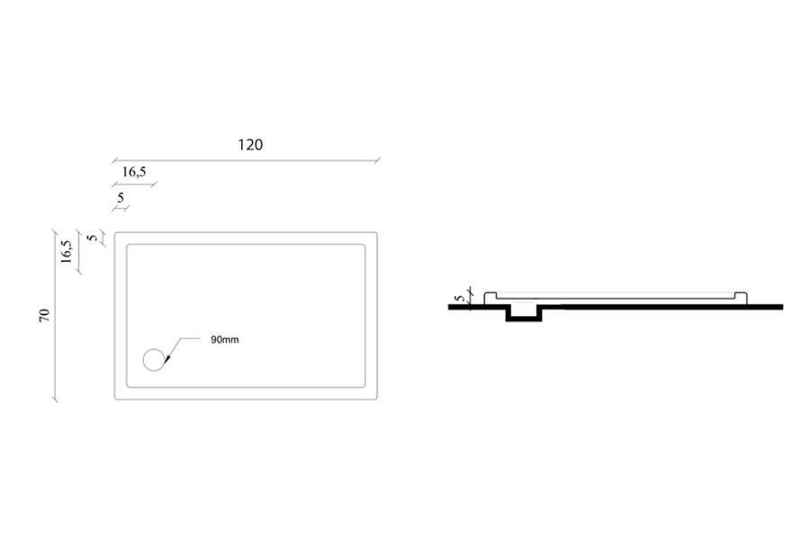 Akrilna tuš kada Nova 70x120 ima visinu 5 cm.
