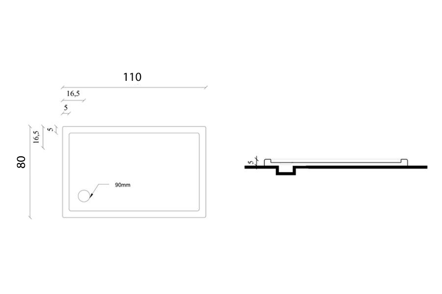 Akrilna tuš kada Nova 80x110 ima visinu 5 cm.