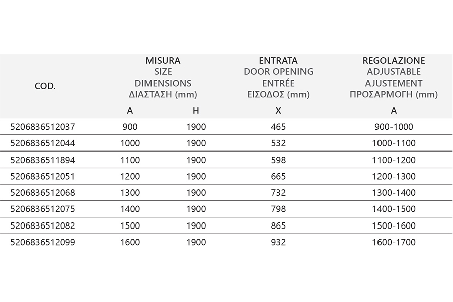 Dimenzije: širina: 1000 mm, visina: 1900 mm