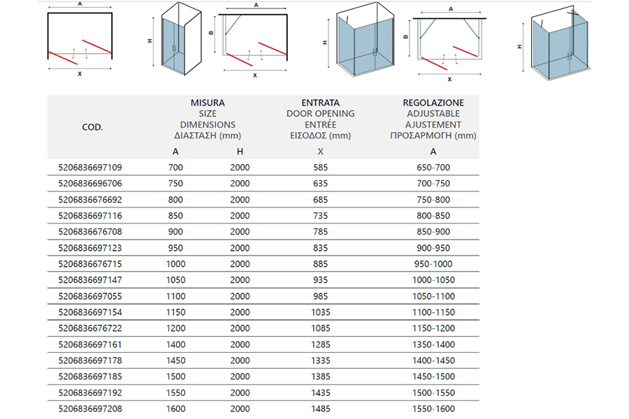 Tuš vrata imaju prozirno kaljeno staklo debljine 6 mm, magnetsko zatvaranje.