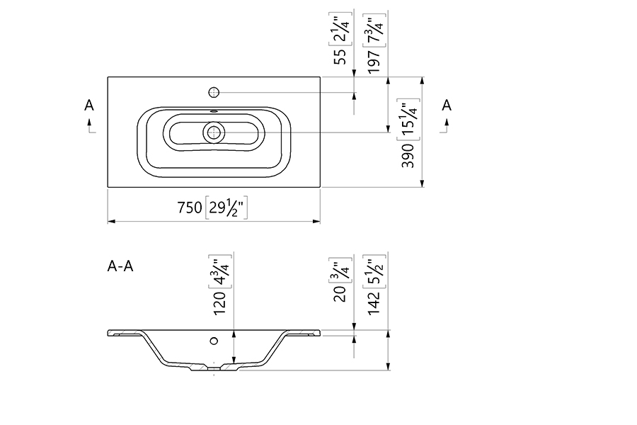 Dimenzije: širina 750, dužina 390, dubina 142