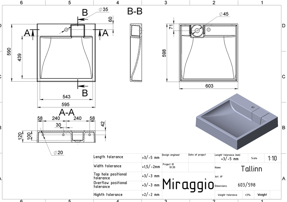 Važno: izrada ormarića ili rupa u pultu se NE PREPORUČA prije kupnje umivaonika, zbog odstupanja dimenzija proizvoda do 3% od plana na online stranici!
