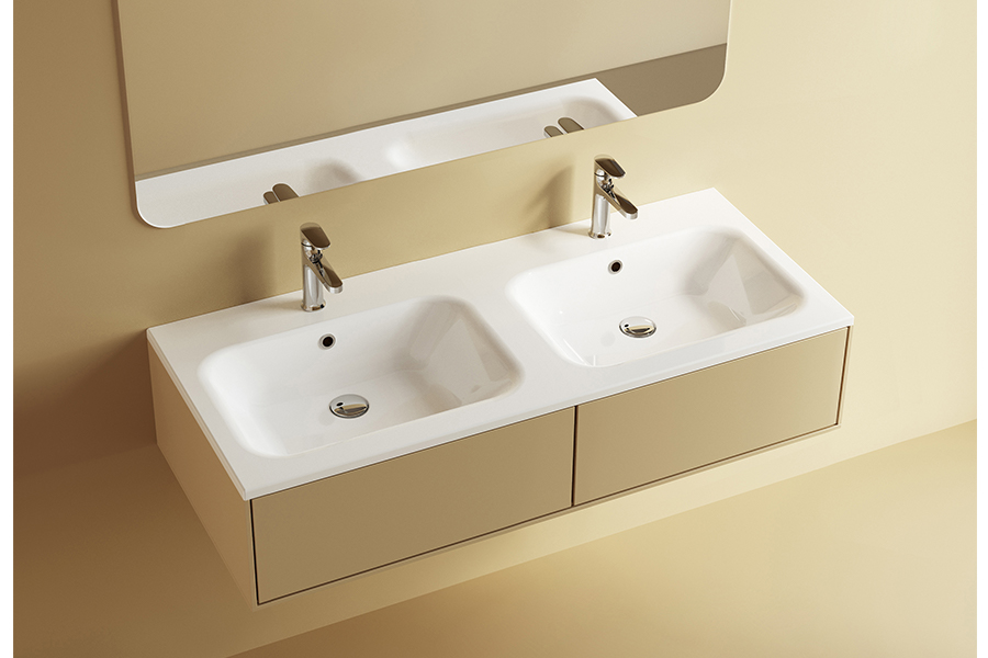 Kvalitetan sjajni umivaonik od umjetnog kamena. 78% materijala – prirodni mramor, 18% - kompozitni vezni materijal.