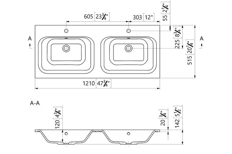 Dimenzije: širina 1210, dužina 515, dubina 142