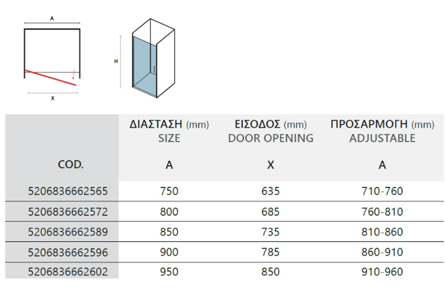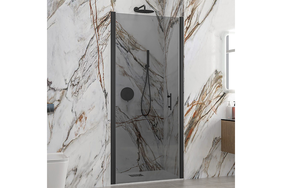 Tuš vrata imaju zatamnjeno kaljeno staklo debljine 6 mm, magnetsko zatvaranje, crni profil.