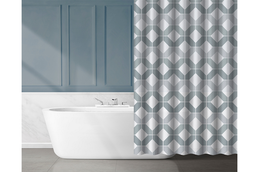 Zavjesa za tuš izrađena je od vodootpornog materijala PEVA. Riječ je o mekoj, fleksibilnoj i ekološki prihvatljivijoj plastici koja ne sadrži PVC te stoga ne sadrži ni klor. Težina zavjese je 90 g/m², a debljina 0,1 mm, što osigurava dobru izdržljivost i optimalnu čvrstoću. Set sadrži 12 bijelih plastičnih prstenova za vješanje na tuš šipku. Folija zavjese prikladna je za nježno ručno čišćenje na 30 °C. Ne glačajte, ne čistite kemijski, ne izbjeljujte i ne sušite u sušilici.