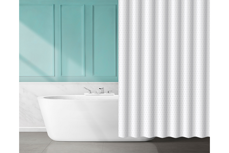 Ova bijela tuš zavjesa izrađena je od izdržljivog poliestera. Komplet sadrži 12 bijelih vješalnih prstenova. Tekstilna tuš zavjesa pogodna je za nježno pranje u perilici rublja na 30 °C te glačanje na niskim temperaturama. Nemojte je koristiti za kemijsko čišćenje, izbjeljivanje ili sušenje u sušilici rublja.
